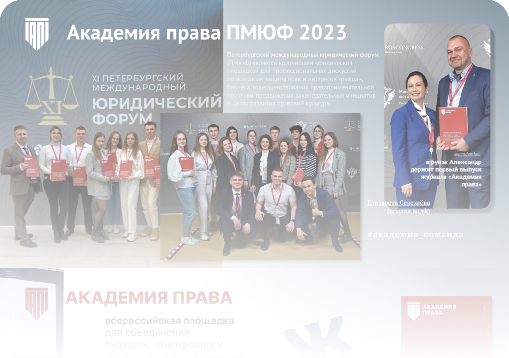 Академия права - это всероссийская площадка для объединения будущих, начинающих и профессиональных юристов, любителей права, включающая: